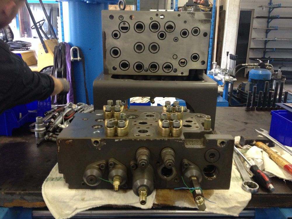 Wir reparieren neben Zylindern und Pumpen auch Ventile, Druckspeicher, Hydro-Motoren und Steuerblöcke.