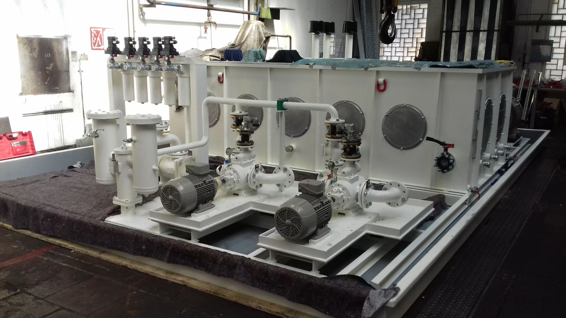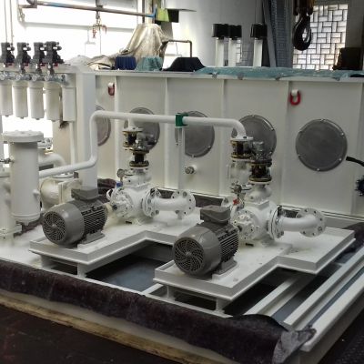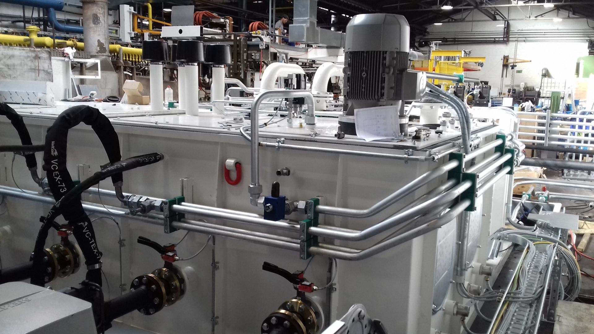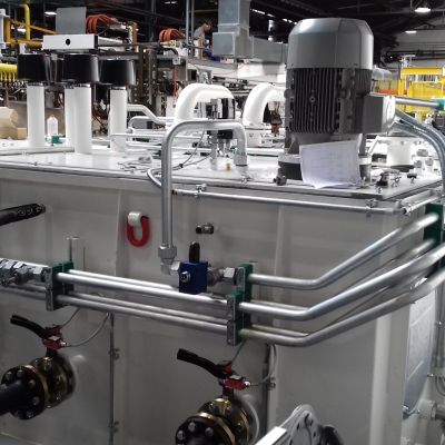 Nach einem Brandschaden musste das Hydrauliksystem , u.a. das Hydraulikaggregat und das komplette Rohrsystem erneuert werden. Hier wurde ein modernes Aggregat mit einem Tankvolumen von 5000 Liter projektiert, angefertigt, aufgebaut und komplett neu verrohrt.