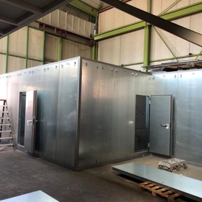 Um die Geräuschentwicklung zu minimieren und die Kühlung des Aggregats in der Werkhalle zu garantieren wurde das komplette Aggregat eingehaust.