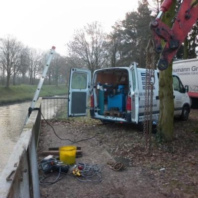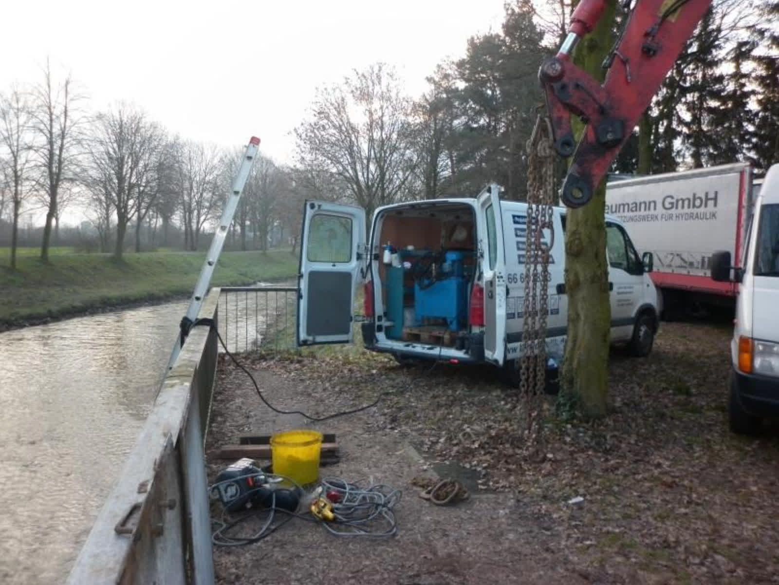Reparaturarbeiten an einer Wehranlage (Stever)
